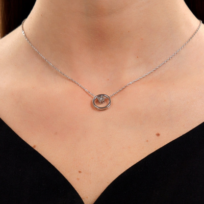 Шейное укр. с 1 бриллиантом природным, 0.003 карат, огранка круг 17 граней, цвет 3, чистота 3, тип огранки Б; Серебро 925 пробы.