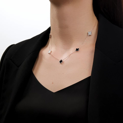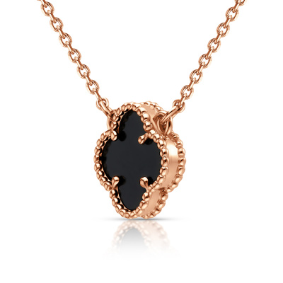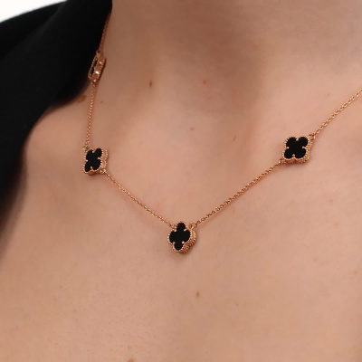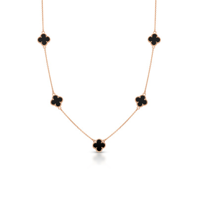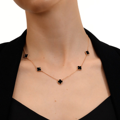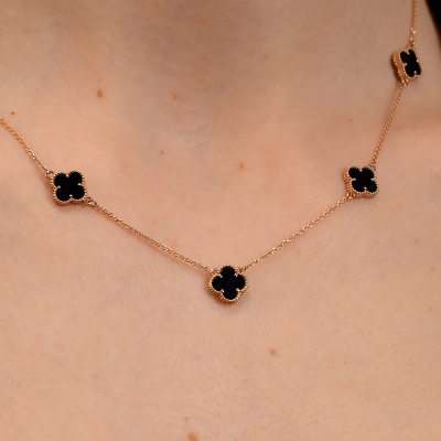 Шейное укр. с 5 ониксами черными природными, 3.66 карат; Розовое золото 585 пробы.