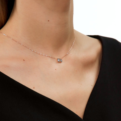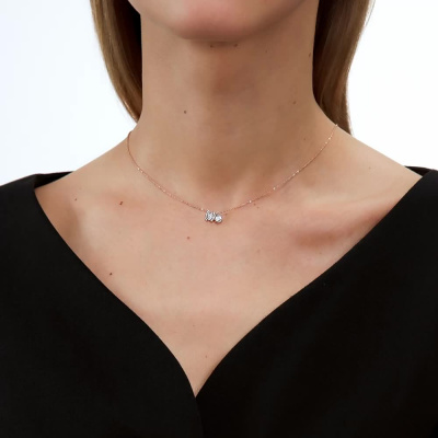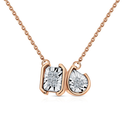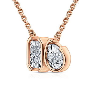 Шейное укр. с 9 бриллиантами природными, 0.032 карат, огранка круг 17 граней, цвет 2, чистота 2, тип огранки А; Розовое и белое золото 585 пробы.