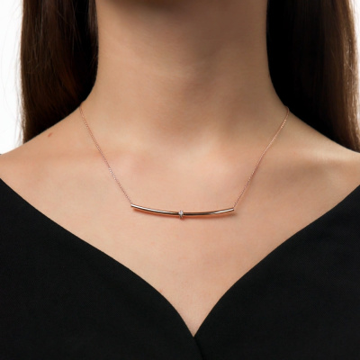 Шейное укр. с 12 бриллиантами природными, 0.03 карат, огранка круг 17 граней, цвет 2, чистота 2, тип огранки А; Розовое золото 585 пробы.