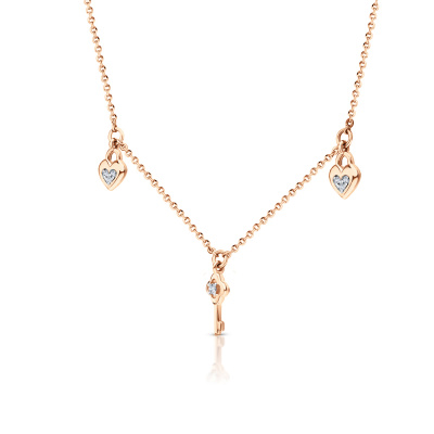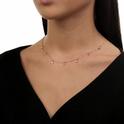 Шейное укр. с 3 бриллиантами природными, 0.04 карат, огранка круг 57 граней, цвет 3, чистота 6, тип огранки А; 12 бриллиантами природными, 0.04 карат, огранка круг 17 граней, цвет 2, чистота 2, тип огранки Б; Розовое золото 585 пробы.