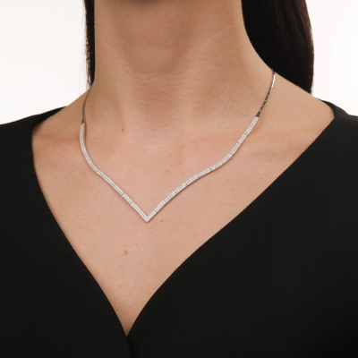 Шейное укр. с 284 бриллиантами природными, 1.92 карат, огранка круг 57 граней, цвет 3, чистота 6, тип огранки А; Белое золото 585 пробы.
