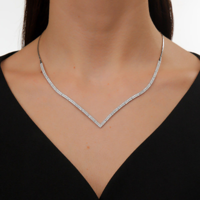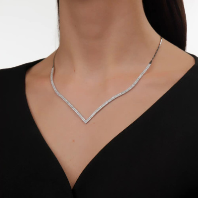 Шейное укр. с 284 бриллиантами природными, 1.922 карат, огранка круг 57 граней, цвет 3, чистота 6, тип огранки А; Белое золото 585 пробы.