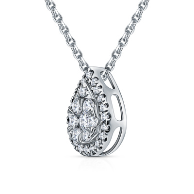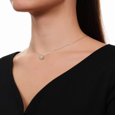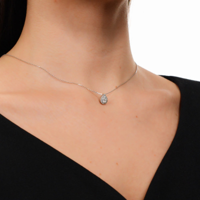 Шейное укр. с 1 бриллиантом природным, 0.04 карат, огранка круг 57 граней, цвет 3, чистота 6, тип огранки А; 2 бриллиантами природными, 0.04 карат, огранка круг 57 граней, цвет 3, чистота 6, тип огранки А; 4 бриллиантами природными, 0.05 карат, огранка круг 57 граней, цвет 3, чистота 6, тип огранки А; 1 бриллиантом природным, 0.008 карат, огранка круг 57 граней, цвет 3, чистота 6, тип огранки А; 20 бриллиантами природными, 0.07 карат, огранка круг 17 граней, цвет 2, чистота 2, тип огранки А; Белое золото 585 пробы.