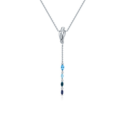 Шейное укр. с 1 топазом свисс природным, 0.15 карат; 1 сапфиром природным, 0.1 карат, цвет 2, чистота 2, тип огранки Б; 1 топазом лондон природным, 0.09 карат; 1 топазом свисс природным, 0.09 карат; Белое золото 585 пробы.