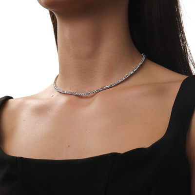 Шейное укр. с 95 бриллиантами выращенными, 7.57 карат, огранка круг 57 граней, цвет 3, чистота 5, тип огранки А; Белое золото 585 пробы.