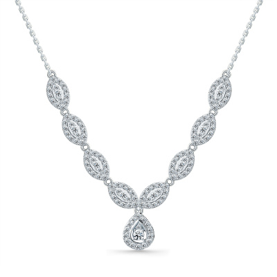 Шейное укр. с 1 бриллиантом природным, 0.05 карат, огранка круг 57 граней, цвет 3, чистота 5, тип огранки А; 8 бриллиантами природными, 0.1 карат, огранка круг 57 граней, цвет 3, чистота 5, тип огранки А; 110 бриллиантами природными, 0.83 карат, огранка круг 17 граней, цвет 2, чистота 2, тип огранки А; 17 бриллиантами природными, 0.05 карат, огранка круг 17 граней, цвет 2, чистота 2, тип огранки А; Белое золото 585 пробы.