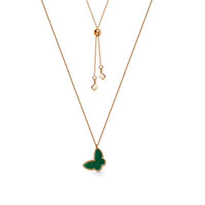 Шейное укр. с 1 малахитом синтетическим, 1.475 карат; Розовое золото 585 пробы.