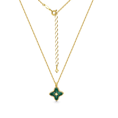 Шейное укр. с 1 малахитом синтетическим, 1.42 карат; Желтое золото 585 пробы.