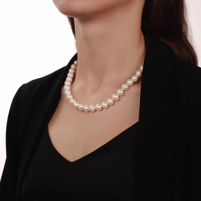 Бусы, вставка: жемчуг пресноводный культивированный белый; Розовое золото 585 пробы.