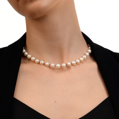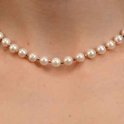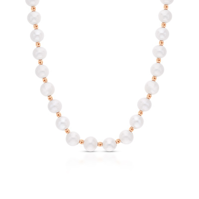 Бусы, вставка: жемчуг пресноводный культивированный белый; Розовое золото 585 пробы.