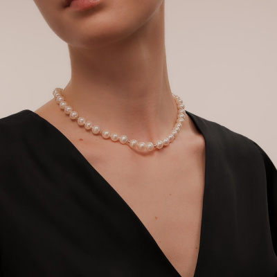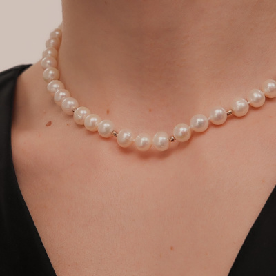 Шейное укр., вставка: жемчуг культивированный; Розовое золото 585 пробы.