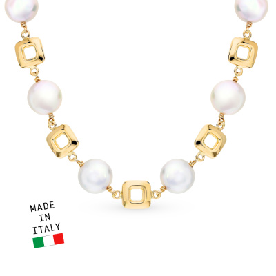 Шейное укр. с 10 жемчугами культивированными; Желтое золото 585 пробы.