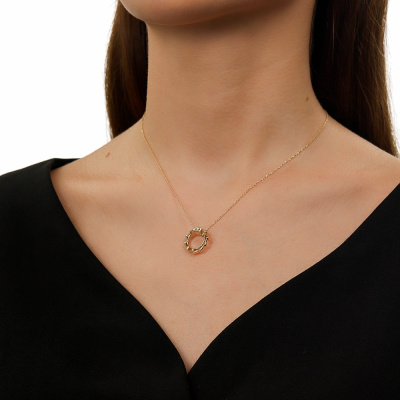 Шейное укр. с 1 бриллиантом природным, 0.02 карат, огранка круг 57 граней, цвет 4, чистота 5, тип огранки А; 1 бриллиантом природным, 0.01 карат, огранка круг 57 граней, цвет 4, чистота 5, тип огранки А; 1 бриллиантом природным, 0.01 карат, огранка круг 57 граней, цвет 4, чистота 5, тип огранки А; 2 бриллиантами природными, 0.01 карат, огранка круг 57 граней, цвет 4, чистота 5, тип огранки А; Желтое золото 585 пробы.
