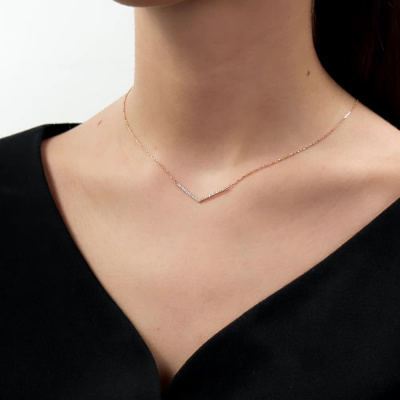 Шейное укр. с 29 бриллиантами природными, 0.12 карат, огранка круг 17 граней, цвет 2, чистота 2, тип огранки А; Розовое золото 585 пробы.