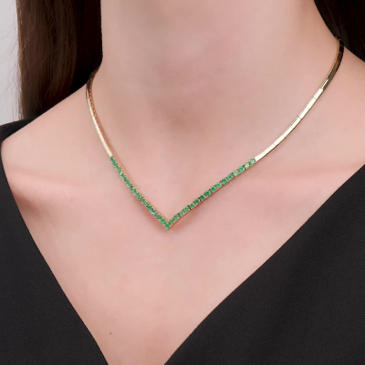 Шейное укр. с 33 изумрудами природными, 3.25 карат, цвет 3, чистота 3, тип огранки Б; Желтое золото 585 пробы.