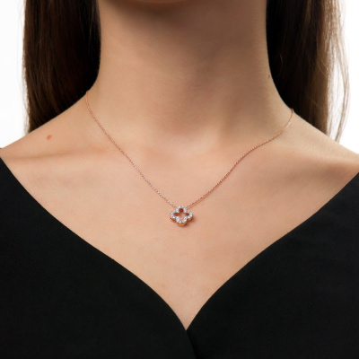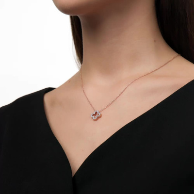 Шейное укр. с 20 бриллиантами природными, 0.23 карат, огранка круг 57 граней, цвет 3, чистота 6, тип огранки А; Розовое золото 585 пробы.