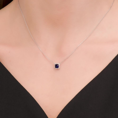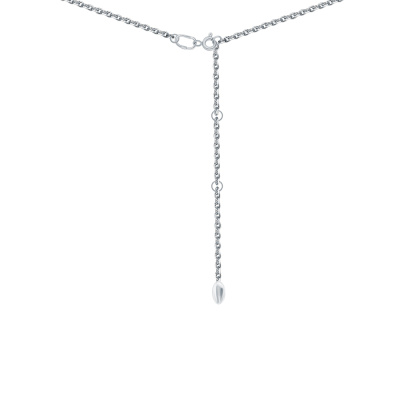 Шейное укр. с 24 бриллиантами природными, 0.05 карат, огранка круг 17 граней, цвет 2, чистота 2, тип огранки Б; 1 сапфиром синтетическим, 0.54 карат; Белое золото 585 пробы.
