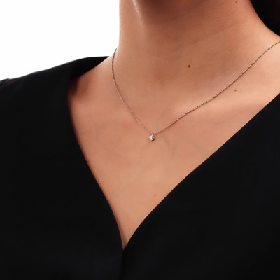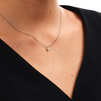 Колье с 1 бриллиантом, 0.248 карат, огранка круг 57 граней, цвет 4, чистота 7, тип огранки А; Белое золото 585 пробы.