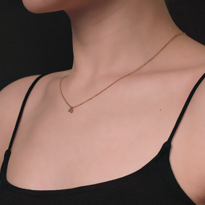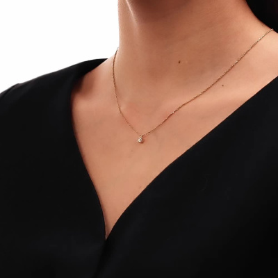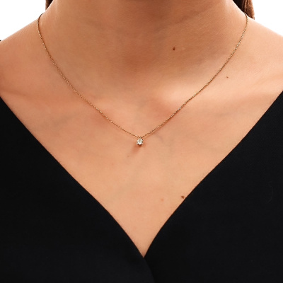 Колье с 1 бриллиантом природным, 0.25 карат, огранка круг 57 граней, цвет 5, чистота 6, тип огранки А; Желтое золото 585 пробы.