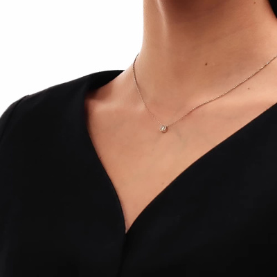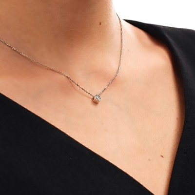 Шейное укр. с 1 бриллиантом природным, 0.34 карат, огранка круг 57 граней, цвет 3, чистота 6, тип огранки А; Белое золото 585 пробы.