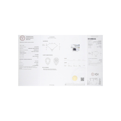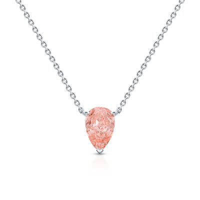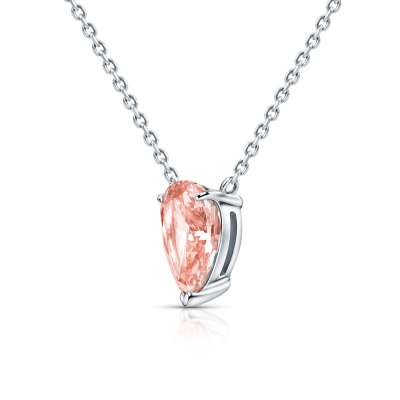 Шейное укр. с 1 бриллиантом выращенным, 1.24 карат, огранка груша 56 граней, цвет Розовый, чистота 5, тип огранки А; Белое золото 585 пробы.