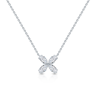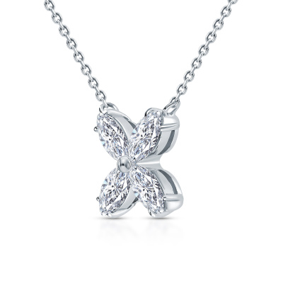 Шейное укр. с 4 бриллиантами выращенными, 0.82 карат, огранка маркиз 55 граней, цвет 3, чистота 5, тип огранки А; Белое золото 585 пробы.