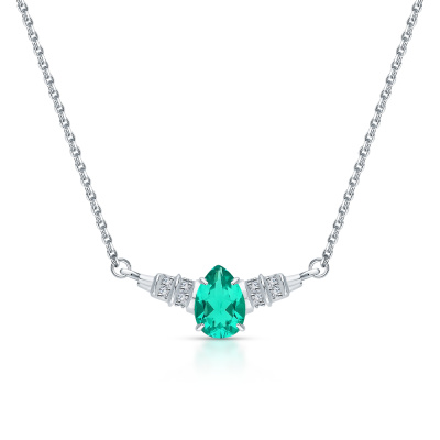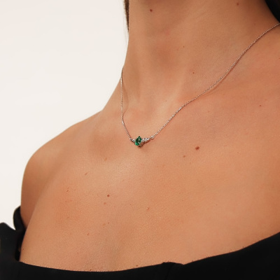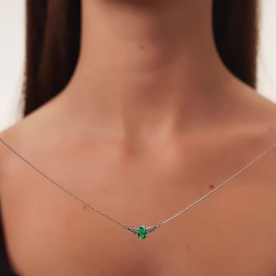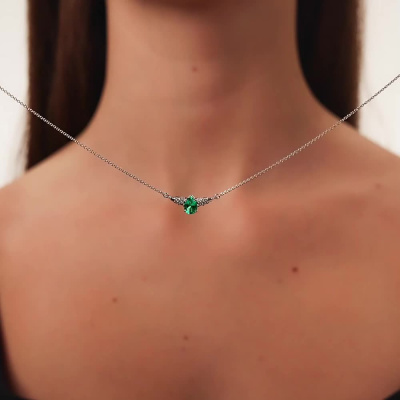 Шейное укр. с 1 изумрудом выращенным Колумбия, 0.6 карат; 12 бриллиантами выращенными, 0.04 карат, огранка круг 57 граней, цвет 3, чистота 5, тип огранки А; Белое золото 585 пробы.
