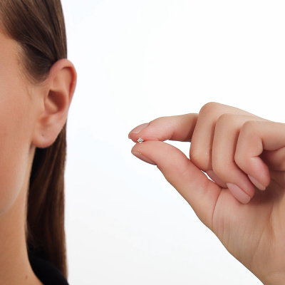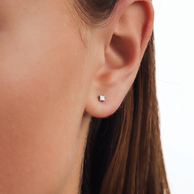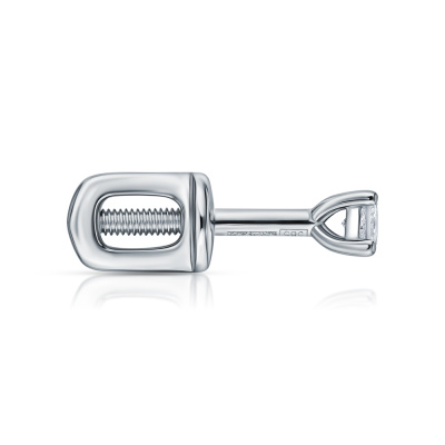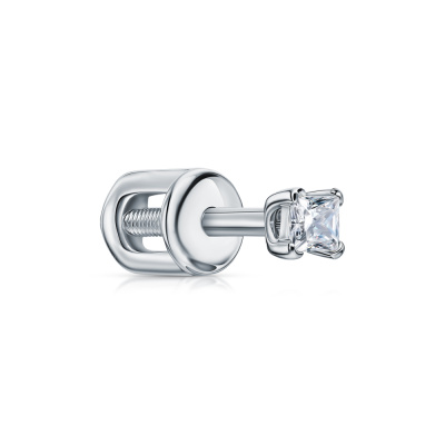 Серьга с 1 бриллиантом природным, 0.06 карат, огранка принцесса 65 граней, цвет 3, чистота 6; Белое золото 585 пробы.
