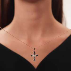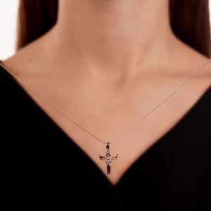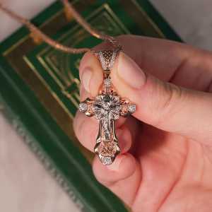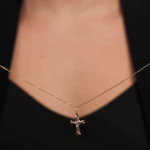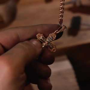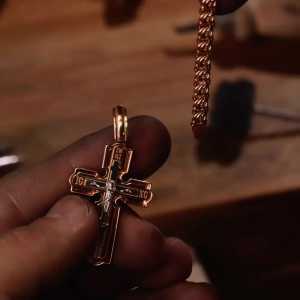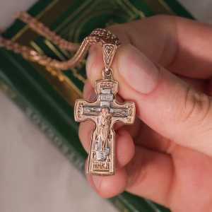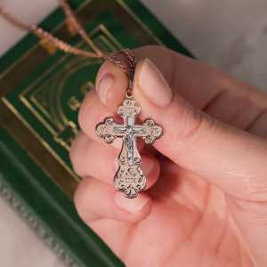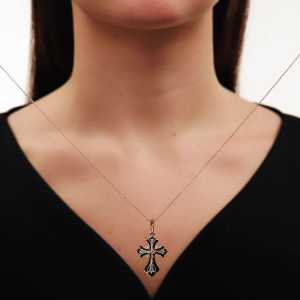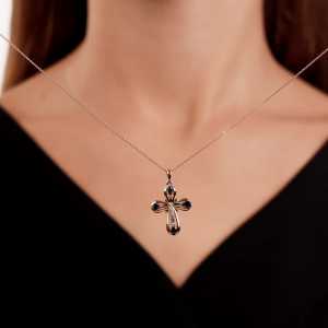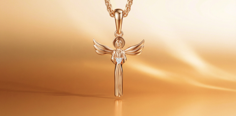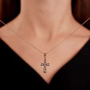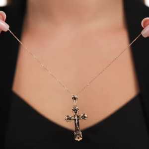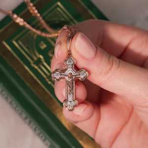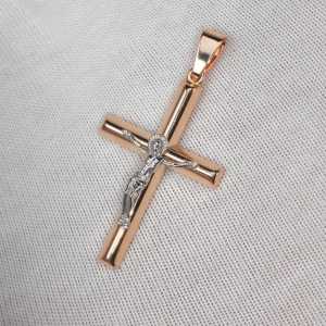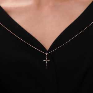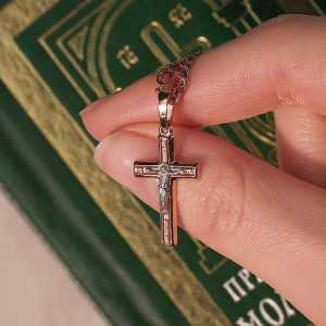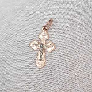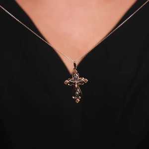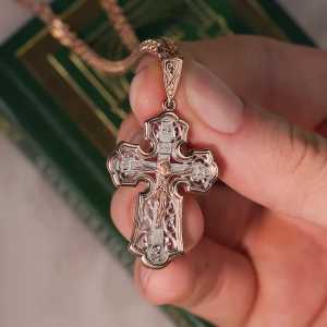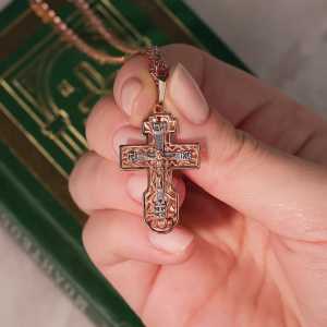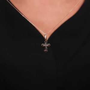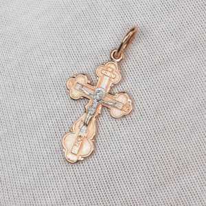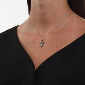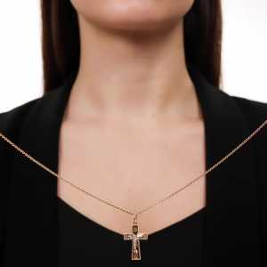 Золотой крест-подвеска с бриллиантами природными и эмалью