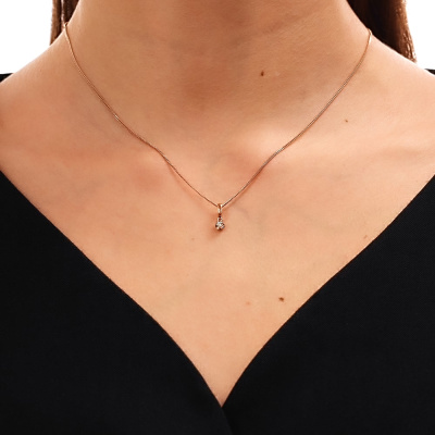 Подвеска с 1 бриллиантом природным, 0.04 карат, огранка круг 57 граней, цвет 4, чистота 6, тип огранки А; Розовое золото 585 пробы.