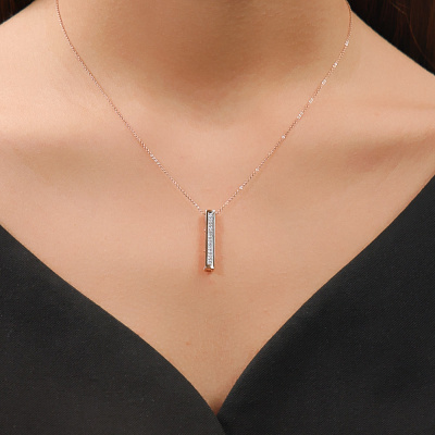 Подвеска с 17 бриллиантами природными, 0.07 карат, огранка круг 17 граней, цвет 2, чистота 2, тип огранки А; Розовое золото 585 пробы.