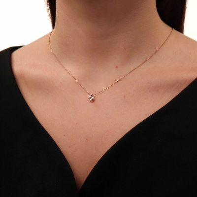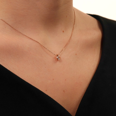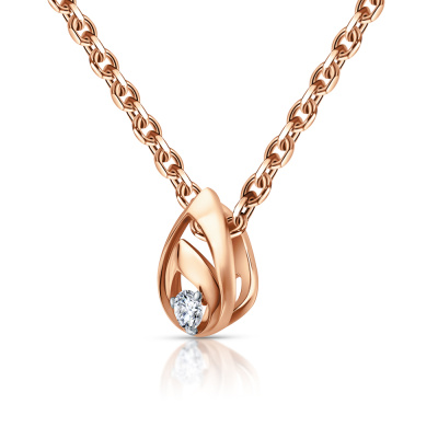 Подвеска с 1 бриллиантом природным, 0.04 карат, огранка круг 57 граней, цвет 3, чистота 6, тип огранки А; Розовое золото 585 пробы.