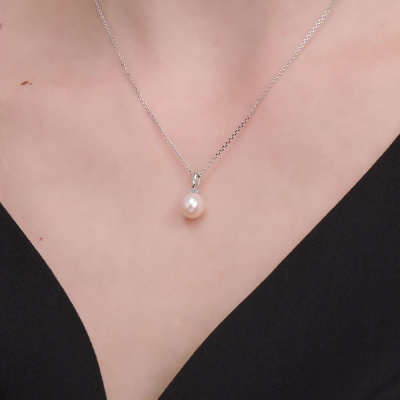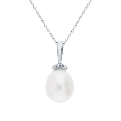 Подвеска с 4 бриллиантами природными, 0.007 карат, огранка круг 17 граней, цвет 2, чистота 2, тип огранки Б; 1 жемчугом пресноводным культивированным белым; Белое золото 585 пробы.