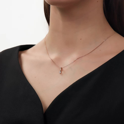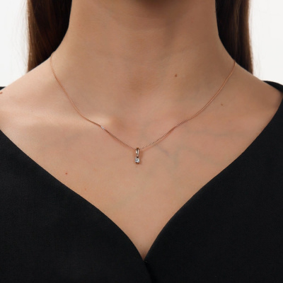 Подвеска с 1 бриллиантом природным, 0.15 карат, огранка круг 57 граней, цвет 3, чистота 6, тип огранки А; Розовое золото 585 пробы.