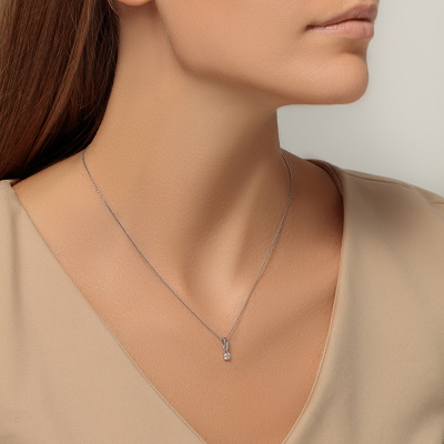 Подвеска с 1 бриллиантом природным, 0.24 карат, огранка круг 57 граней, цвет 3, чистота 6, тип огранки А; Белое золото 585 пробы.