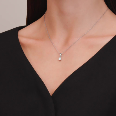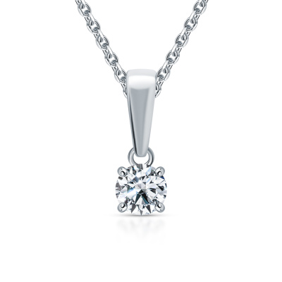 Подвеска с 1 бриллиантом природным, 0.4 карат, огранка круг 57 граней, цвет 3, чистота 6, тип огранки А; Белое золото 585 пробы.