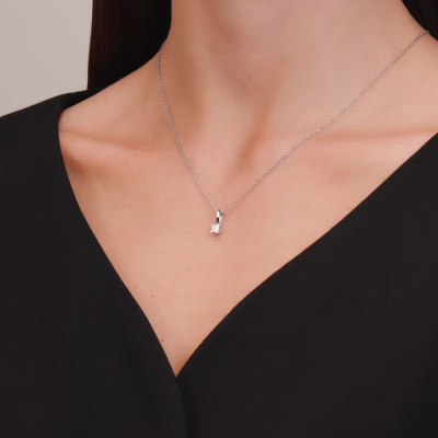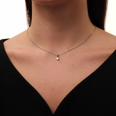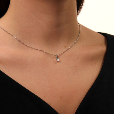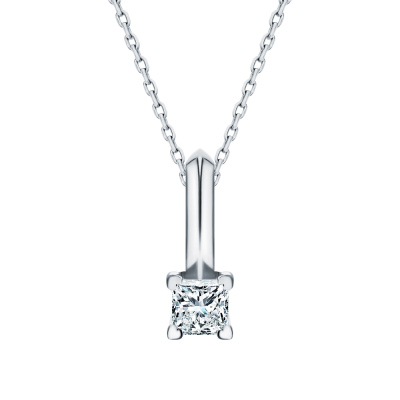 Подвеска с 1 бриллиантом природным, 0.23 карат, огранка принцесса 65 граней, цвет 3, чистота 6, тип огранки А; Белое золото 585 пробы.