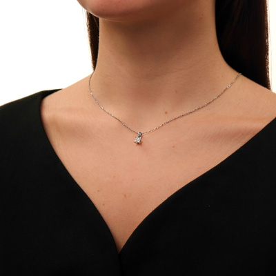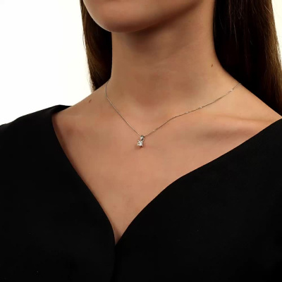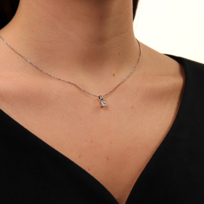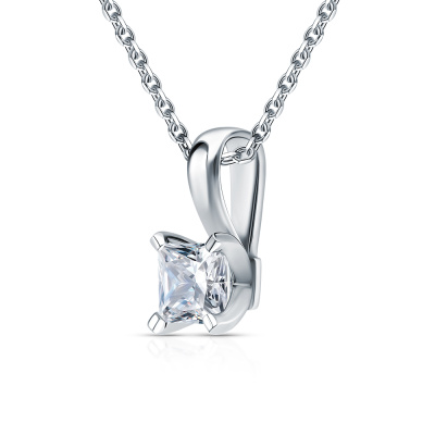 Подвеска с 1 бриллиантом природным, 0.5 карат, огранка принцесса 65 граней, цвет 4, чистота 6, тип огранки А; Белое золото 585 пробы.