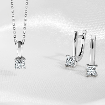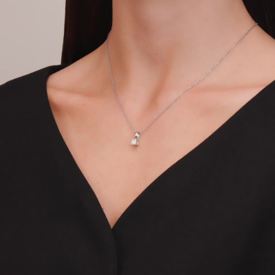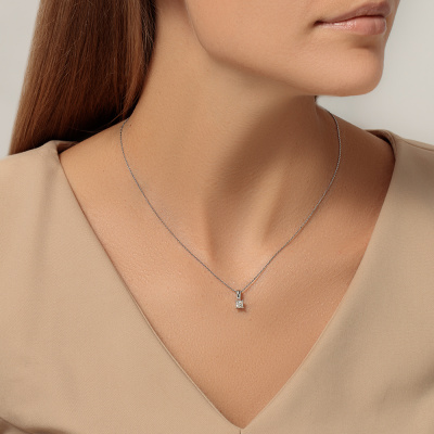 Подвеска с 1 бриллиантом природным, 0.4 карат, огранка принцесса 65 граней, цвет 4, чистота 6, тип огранки А; Белое золото 585 пробы.
