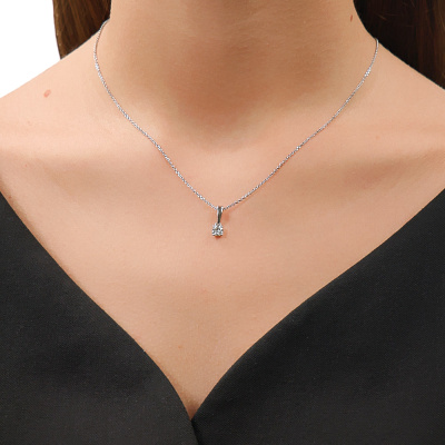 Подвеска с 1 бриллиантом природным, 0.31 карат, огранка круг 57 граней, цвет 3, чистота 6, тип огранки А; Белое золото 585 пробы.