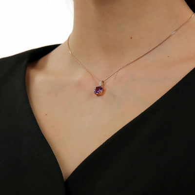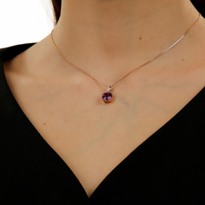 Подвеска с 6 бриллиантами природными, 0.01 карат, огранка круг 17 граней, цвет 2, чистота 2, тип огранки Б; 1 аметистом природным, 1.91 карат; Розовое золото 585 пробы.