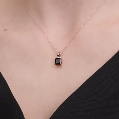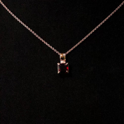 Подвеска с 4 бриллиантами природными, 0.01 карат, огранка круг 17 граней, цвет 2, чистота 2, тип огранки Б; 1 гранатом природным, 2.15 карат, тип огранки Б; Розовое золото 585 пробы.