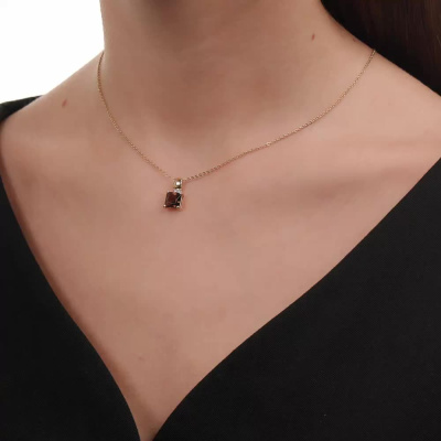 Золотая подвеска с кварцем дымчатым и бриллиантами