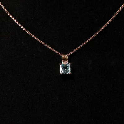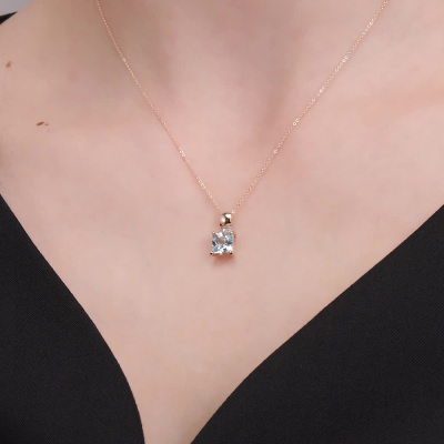 Подвеска с 4 бриллиантами природными, 0.01 карат, огранка круг 17 граней, цвет 2, чистота 2, тип огранки Б; 1 топазом скай природным, 2.1 карат; Розовое золото 585 пробы.