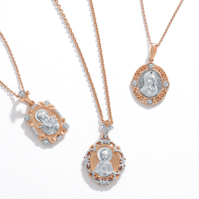 Золотая подвеска с бриллиантами "Божия Матерь Семистрельная"