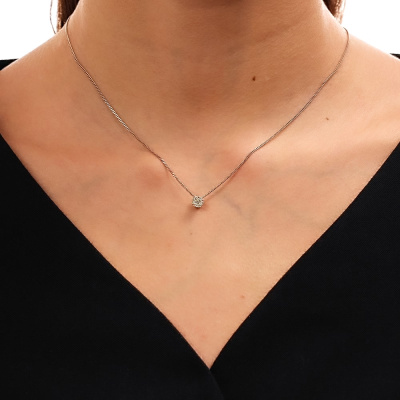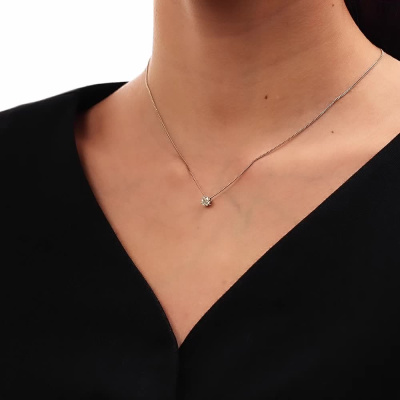 Подвеска с 1 бриллиантом природным, 0.04 карат, огранка круг 57 граней, цвет 5, чистота 6, тип огранки А; 6 бриллиантами природными, 0.12 карат, огранка круг 57 граней, цвет 5, чистота 6, тип огранки А; Белое золото 585 пробы.