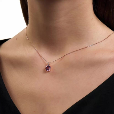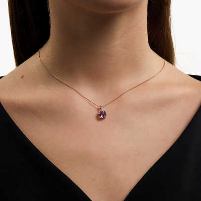 Подвеска с 3 бриллиантами природными, 0.006 карат, огранка круг 17 граней, цвет 2, чистота 2, тип огранки Б; 1 аметистом природным, 1.64 карат; Розовое золото 585 пробы.