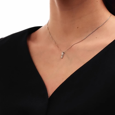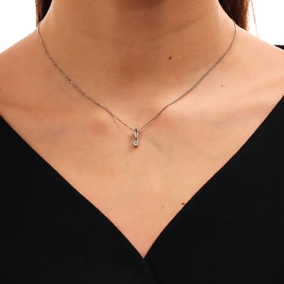 Подвеска с 1 бриллиантом природным, 0.15 карат, огранка круг 57 граней, цвет 3, чистота 6, тип огранки А; Белое золото 585 пробы.