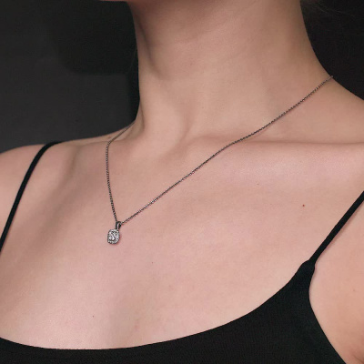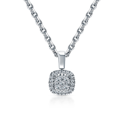 Подвеска с 29 бриллиантами природными, 0.22 карат, огранка круг 57 граней, цвет 3, чистота 6; Белое золото 585 пробы.